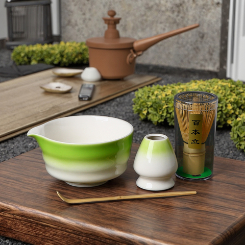 4 in 1 Stocked Traditional Natural Bamboo Whisk Matcha Starter Kit Handmade Ceramic Bowl Set for Matcha Tea Ceremony
