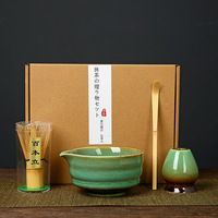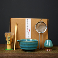 Набор для чайной церемонии матча 4 в 1: традиционный бамбуковый венчик, керамическая чаша ручной работы