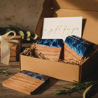 Wholesale Custom Logo Heat-resisting Acacia Wood Cup Mat Square Resin Wood Coasters for Coffee