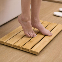 Creative Rectangular Natural Bamboo Striped Shower Wood Bath Mat for Bathtub SPA Sauna Floor