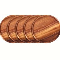 USA倉庫5パックAcaciaウッドラウンドサービングトレイ家庭用学校レストラン