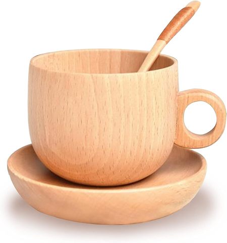 Personal isierte benutzer definierte natürliche hand gefertigte Buche Holz Kaffeetasse und Kaffee platte 3-teiliges Set Holz Tee Milch becher Geschenk