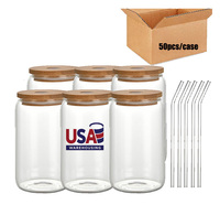 Склад в США, 16 унций, 500 мл, большая чашка для пивных колы из боросиликатного стекла с бамбуковой крышкой и соломой