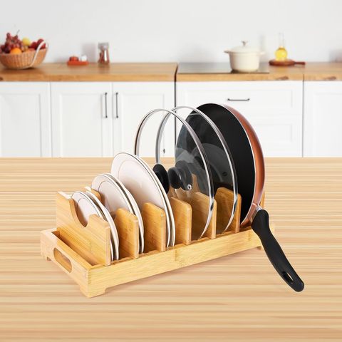Atacado De Alta Qualidade De Bambu Pot Lid Organizador Pot Lid Holder para Cabinet Corner Shelf Kitchen Organizer Bamboo dish rack