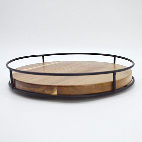 10in Acacia Wood Lazy Susan Servindo Bandeja com Alça Bandeja giratória de metal para cozinha Home Decor