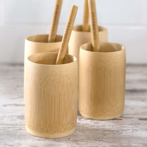 Tazas de madera de bambú reutilizables biodegradables, etiqueta personalizada privada de lujo, 100%